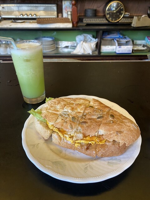 くるみパンのサンドウィッチは、おすすめは茄子とトマトのモッツァレラと言ってたかと思いますが、たしか前に食べたので、オムレツサンドにしてみました