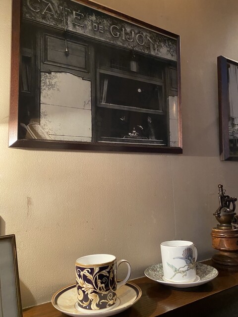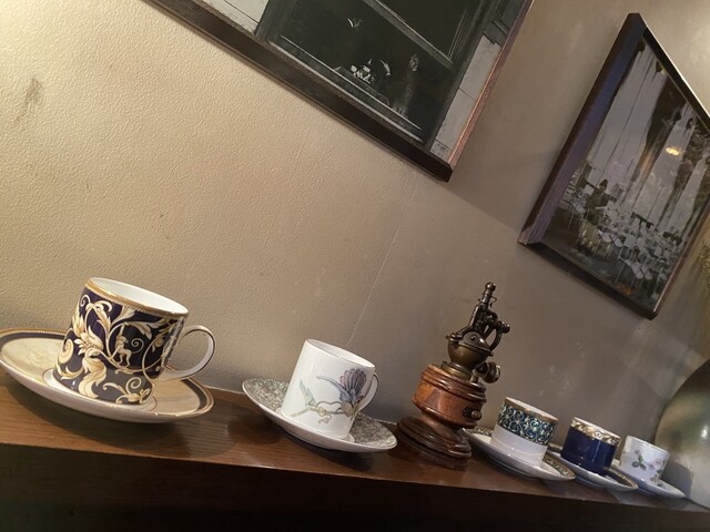 店内は落ち着いた雰囲気で、壁側にはアンティークのカップアンドソーサーと、モノクロのヨーロッパのどこかのカフェの写真が飾られていて、それがなんとも良い感じでした