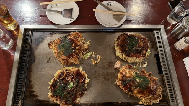 お好み焼きは店員さんが焼いてくれます。