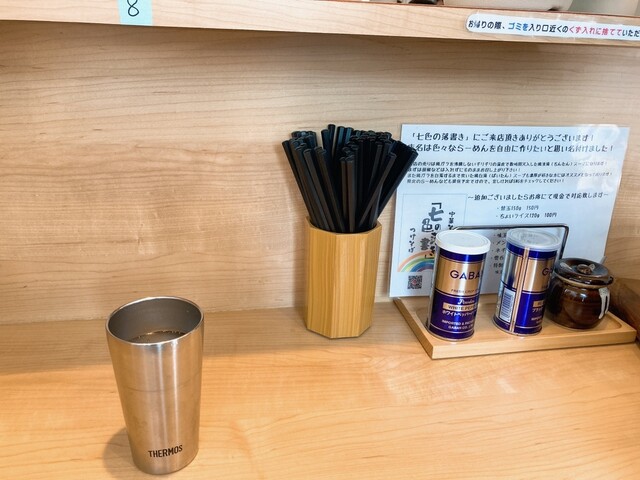 お冷はサーモスのタンブラーで提供されます