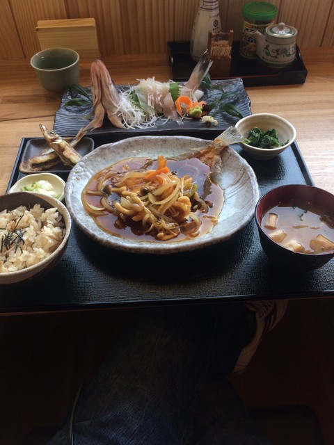 ランチ平目の甘酢あんかけ定食1200円。味を考慮するとCP抜群です。