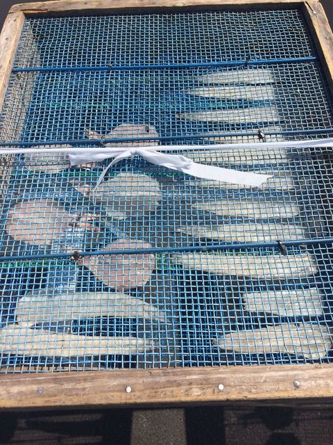 店舗横で干して作る自家製の干物は松月の代表料理です。