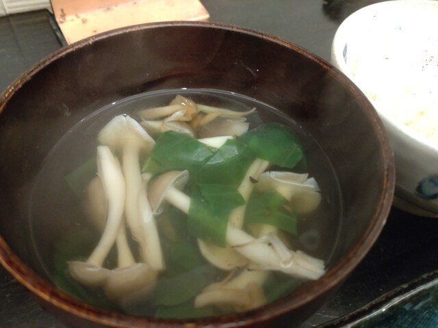 具材は、とってもシンプル。しめじとわかめのみ。こちらの素晴らしい出汁に、それぞれの風味がふんわりと香ります。若干、醤油の味が強めに感じられたように思いましたが、とても美味しかったです。