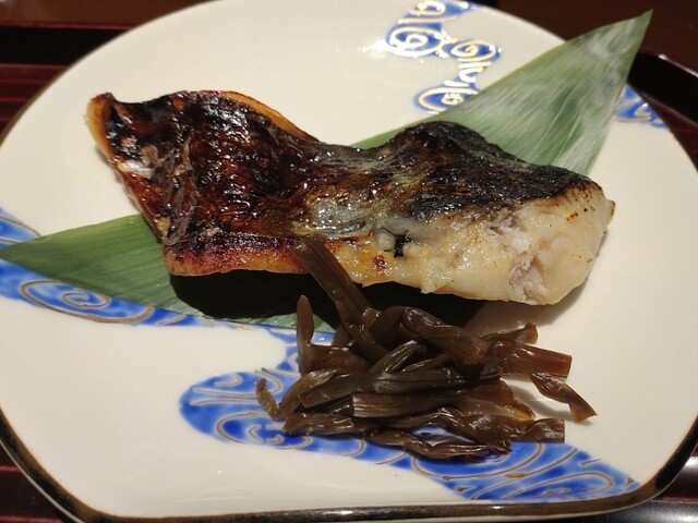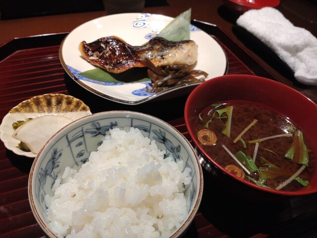この日は、法事で京都まで。法事のあと、何か美味しいものを食べて帰ろうと、事前に予約しておいた、こちらのお店へ。お店は、小さな看板が出ているだけなので、通りすがりでは分かりにくいですね。近くのコインパーキングに停めてから、お伺いしました。お伺いした時は平日のお昼1時でしたが、満員でしたので、予約しておいて大正解でした。食べている間も、電話がよく鳴ってましたが、丁寧にお断りされてました。カウンター席に案内され、メニューとにらめっこ。悩んだ挙げ句、私は、さわら西京焼定食¥2,000に、母は、銀鱈西京焼定食¥2,200に、そして、ちりめん山椒¥250を追加しました。