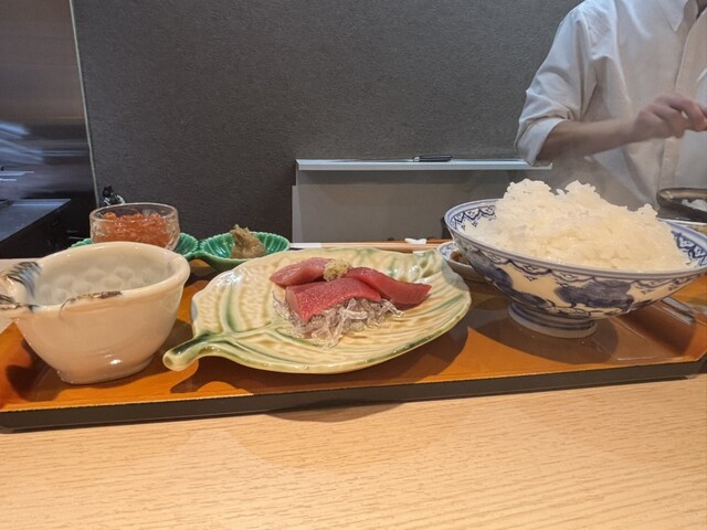 目の前で切り出されるマグロの迫力にまず心を掴まれる。