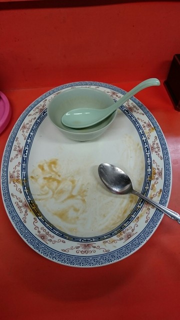 一皿におかずと飯が盛られスプーンで頂くスタイル
