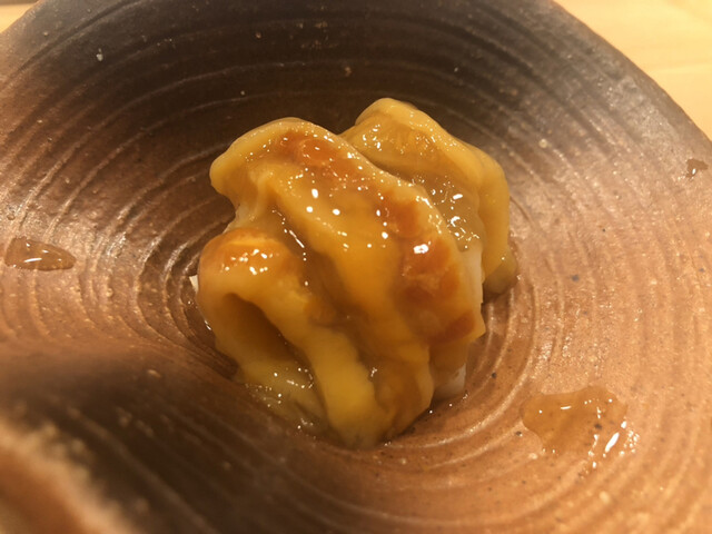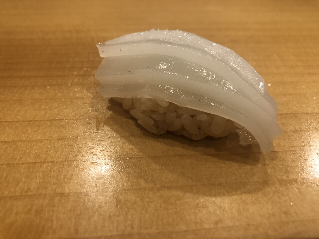 お店に入って最初のビックリは、色黒で鮨職人よりはサーファーと行った方がピッタリくる大将の見た目です。自分はそのギャップに驚きながらも、店内はピリッとした雰囲気に包まれていました。ですが、大将の軽快な口調が始まると、和らいだ雰囲気にかわります。素材への造詣が深く、料理への愛情が溢れているのが、会話の内容から伝わってきます。