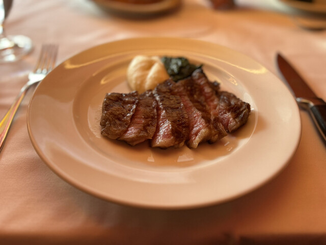 メインは子牛のTボーンステーキもしくは黒毛和牛の京都肉のステーキから選べます。