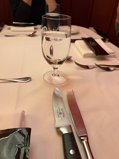 娘がステーキを食べたいとリクエストを受け、土曜日のランチに京都烏丸のベンジャミンステーキハウスを予約。が、金曜日の夜に娘が体調壊したので、妻と2人でしました。お店は百名店にも選ばれており、高級感がありますね。