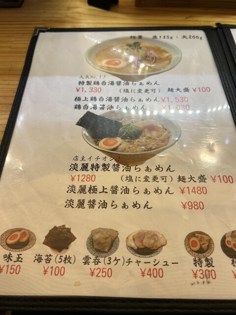 滅多に行かないエリアですが、乗り換えで鶴橋に来たので課題店のしゅきへ訪問。遅めのランチで14時前だったので待たずに入店できました。人気No1の鶏白湯醤油か悩みましたが、キミに決めた!