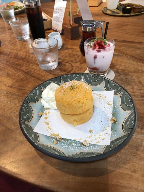 当然モーニングセットですが、私が食べた姫様セットはシフォンケーキみたいのに、目玉焼きがのっておりました。