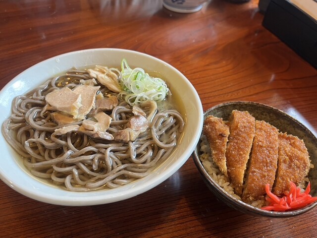 店内は落ち着いた雰囲気で自分のお気に入りで、いい感じです。名物の肉そばとソースカツ丼を注文!