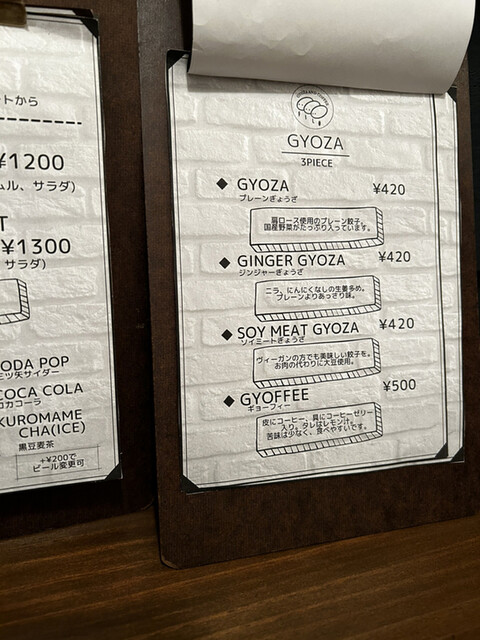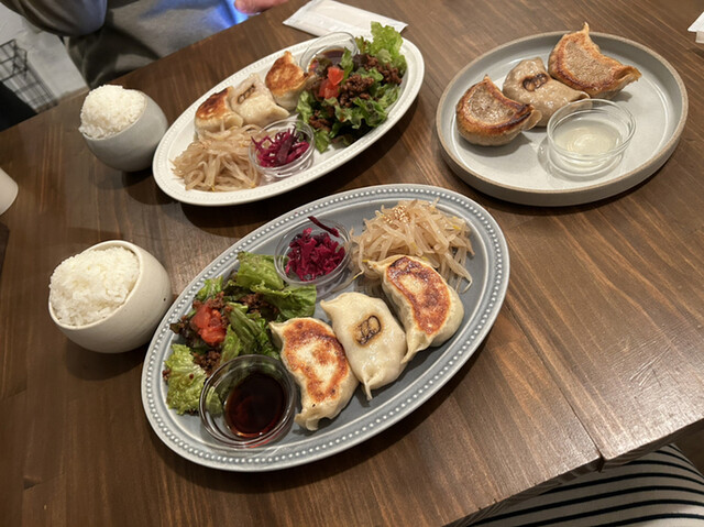 プレートの餃子はプレーン、ジンジャー、ソイミートの3種類から味が選べました。