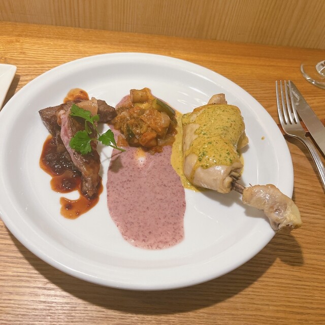 もう1種類は鶏の胸肉にしましたが かなり大きかったです(^◇^;) トマトソースがかかっていました。レモン汁をかけていただく豚肉の香草焼きの方が好みだったかも(´∀`)