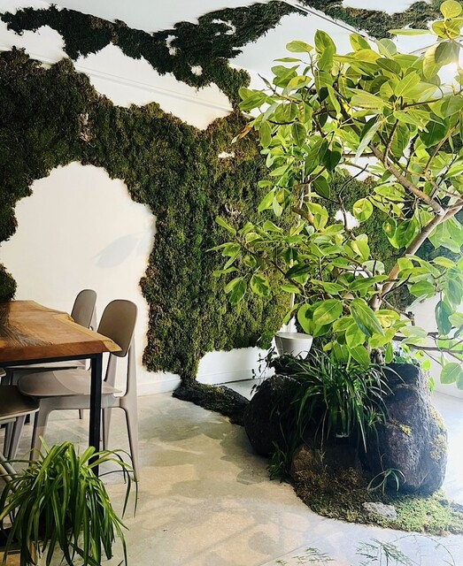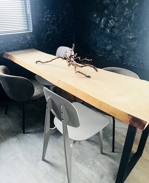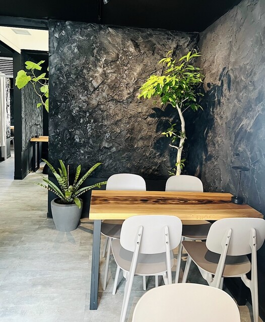 2階は岩肌を思わせる質感の壁面で統一されており、