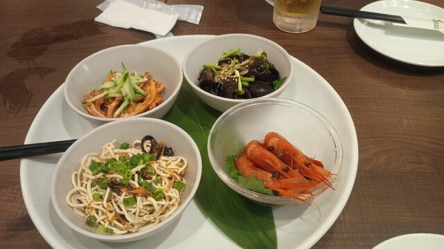 の3品と4種の前菜、シュウマイ、麻婆豆腐