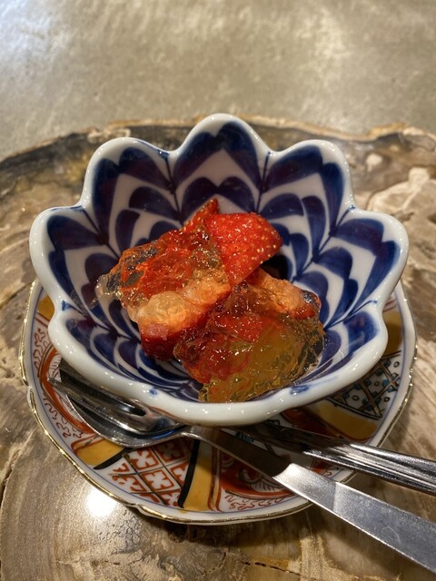 デザートの紅ほっぺにアセロラジュレ乗せ