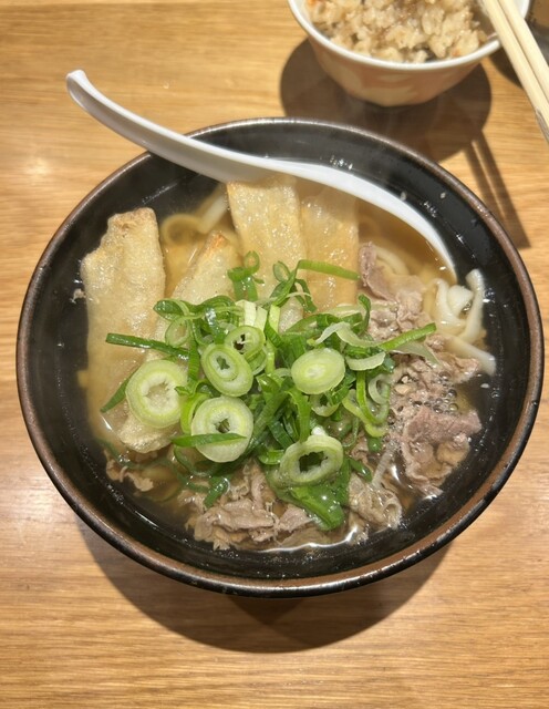 澄み切った出汁に溶け出すお肉の旨みとサクサクごぼう天