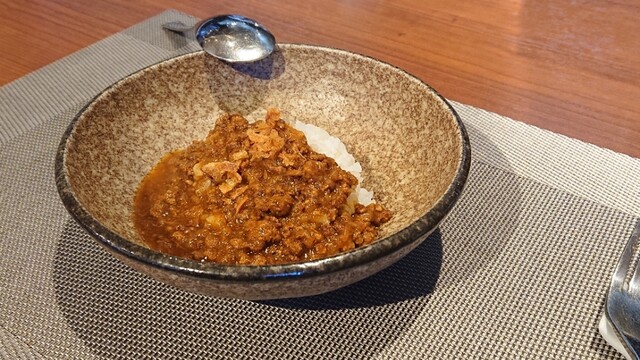 口にしている最中は辛さ控え目でさらりとした印象のキーマカレーでしたが、後になってホットな辛さがいつの間にか口の中に広がっている感じのカレーでした。