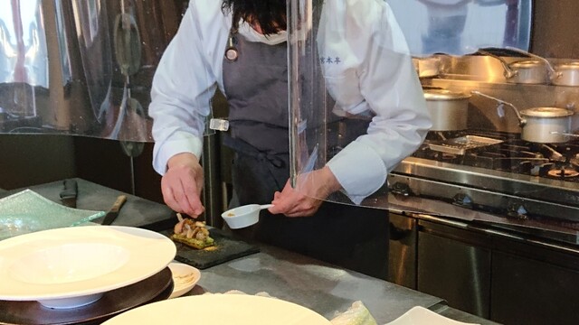 お昼は奥様と二人でやっていらっしゃるそうですが、夜はシェフお一人で全てを対応なさっています。