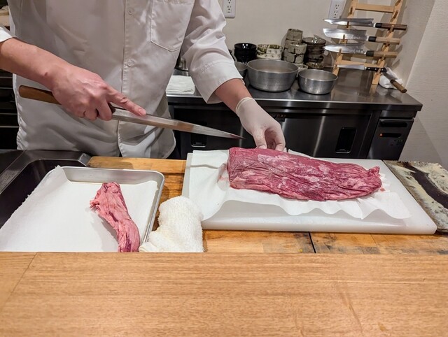 黒毛和牛を目の前でカット