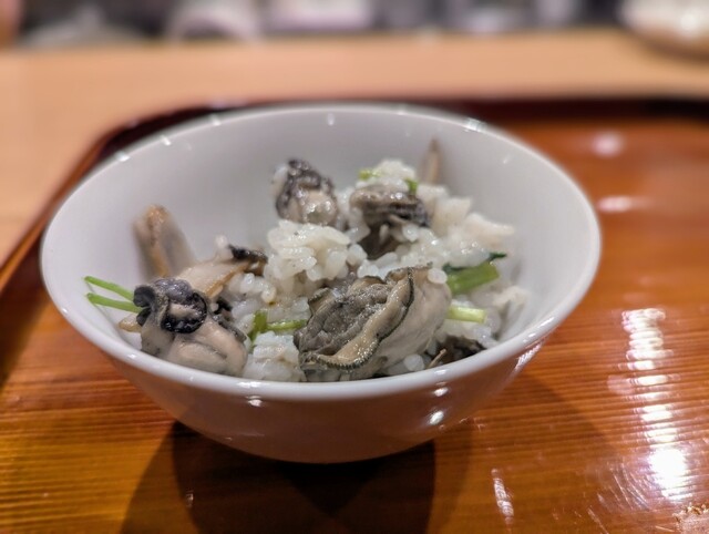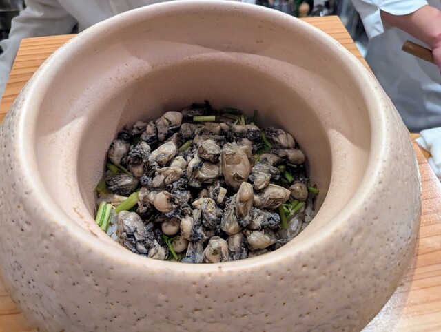 ・天草産の牡蠣をふんだんに使った土鍋ご飯は、これまで出会った牡蠣ご飯の中で断トツ。牡蠣の旨味がご飯全体に染み込んで存分に楽しめます。牡蠣好きには、たまらない味わいでした。