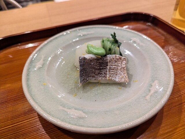 ・ 濃厚な旨味を持つ長崎産の黒アワビを、さっぱりとした味わいのぬたで和えてあります。肉厚で柔らかなアワビの食感と、ぬたの酸味が絶妙に調和した一品でした。