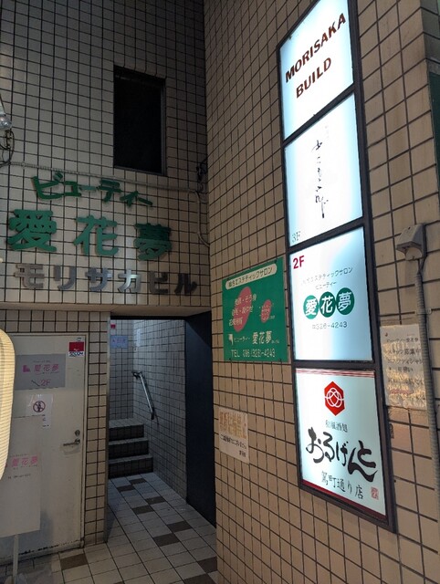 エレベーターで3階まで上がるとすぐ右手にお店入口があります。硝子張りの扉の向こうには料理やまつもとけんじの文字が。