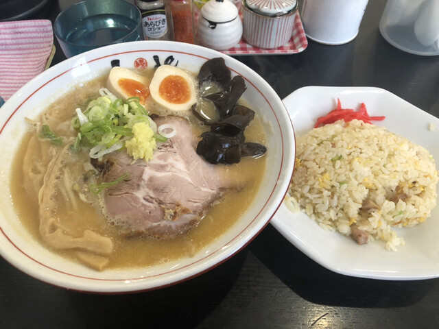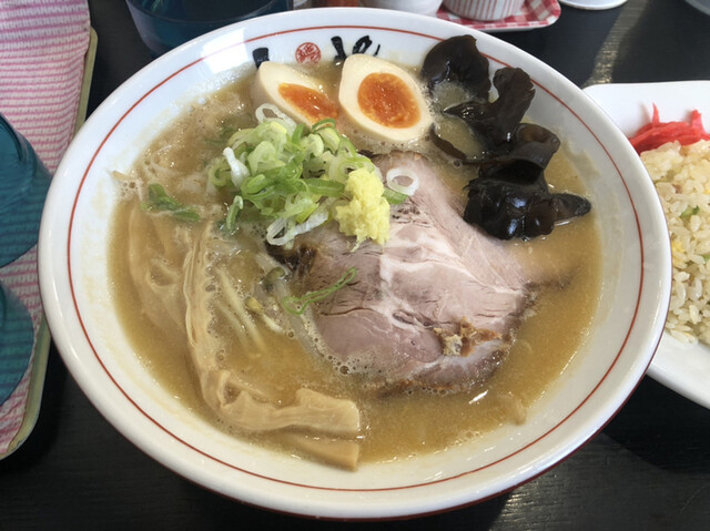 魚介豚骨味噌(950円)、半チャーハン(400円)、チャーシュー(+170円)、味付け卵(+150円)