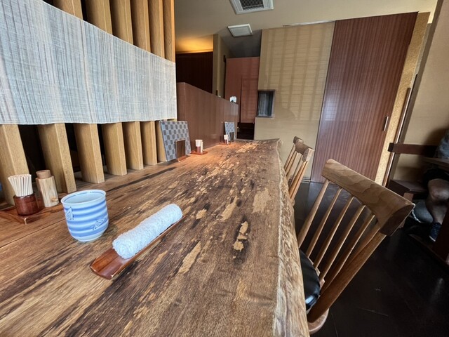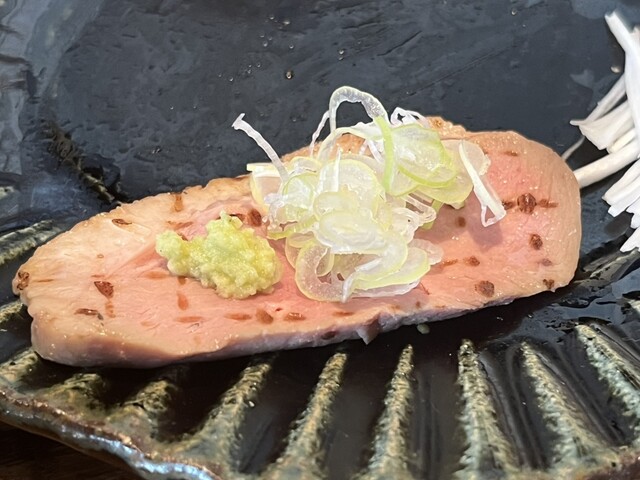 9月土曜お昼前、美味そうなお蕎麦屋見つけてそこの鴨のロースがこれまた美味そうで来ちゃったのがコチラ、手打ち蕎麦三乗さんを突撃。店内潜入すると長いカウンター席にご案内。ちょっとテーブルが反っちゃってるのがご愛嬌。早速、メニュー見て鴨ロース1,400円とせいろ910円をオーダー。10分程度で鴨ロースが配膳、ロゼ色の鴨肉と添えられた白髪ネギとたぶんマイユの粒マスタードに大根おろしのソース、白髪ネギと粒マスタードを鴨ロースで巻いておろしソースをつけて頂きます。鴨肉がしっとり柔らかで美味しい。酒が呑みたいが車の運転あるから我慢です。程なくせいろが配膳、やや太めにも思える9割の蕎麦をいい感じなバランスのつゆにちょっとつけてズズーっといくと蕎麦の太さは気にならずむしろこの太さが合っているうめぇ。わさびをちょっと乗っけて食べるもうまい。鴨に戻って蕎麦に添えられたわさびとネギを鴨肉に乗せ蕎麦つゆちょっとかけて頂いてもこれまた美味い。ちょっとお高いお店ながらおじさんオススメごちそうさまでした。