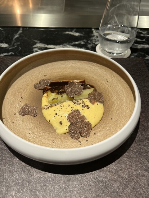 その上に黒トリュフをこれでもかと目の前で削っていただくので「ちょっとそんなに削っちゃって大丈夫なの?!」とお客側が心配してしまいました。笑