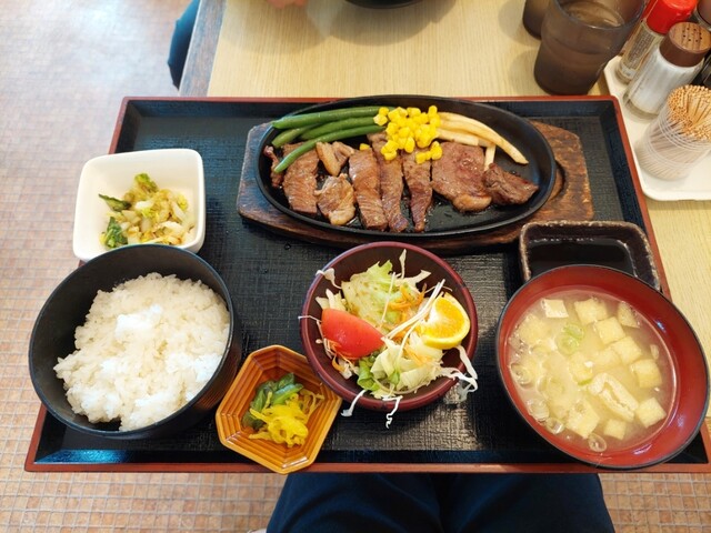 焼肉定食とステーキ定食を注文。客の多さの割には短時間で出てきました