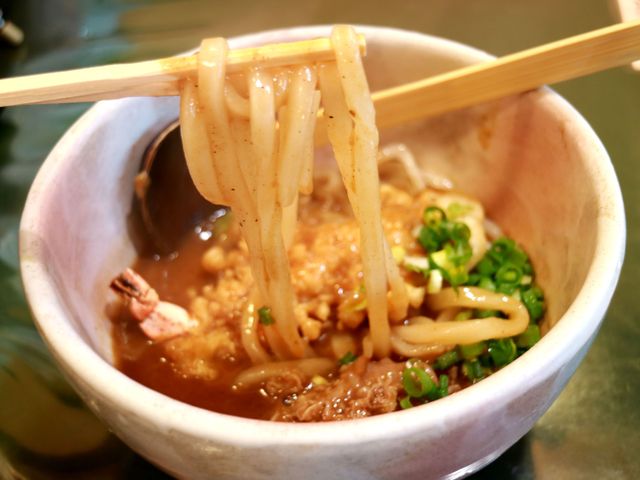 連れはうどん入り押し、私はそば入りのほうが好きです。