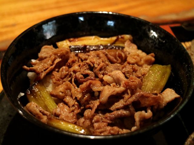 牛丼がこれまた美味。全体的に甘めの味つけで、お肉の量は多く、焼ネギがよいアクセントでした。