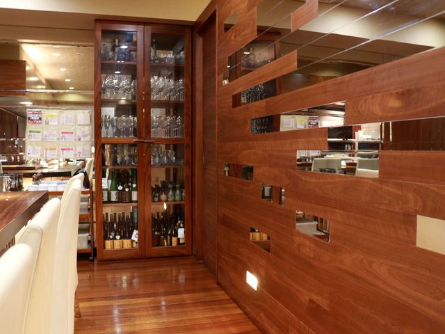 カウンター席のある部屋は、濃い樹色を基調として高級感が漂います。