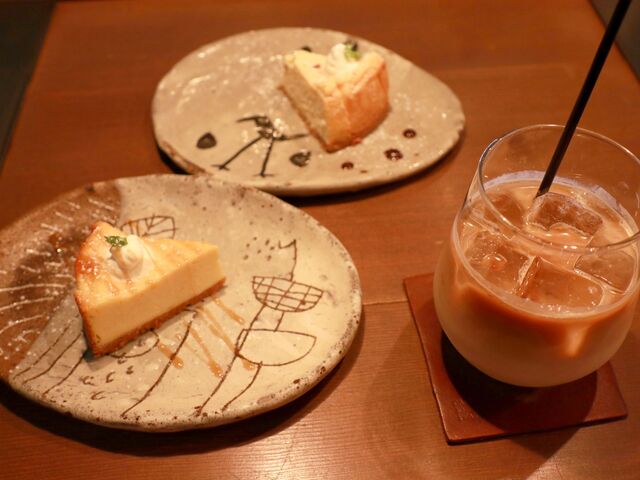 「チーズケーキ」2種と「アイスカフェラテ」を注文。