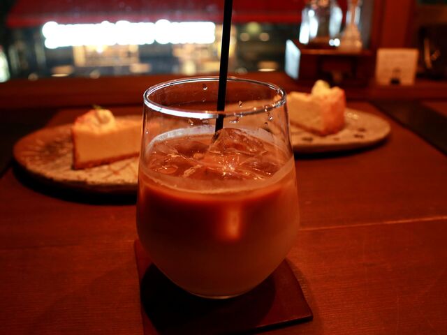 ミルク多めの甘仕様ですが、軽い口当たりなので濃厚チーズケーキによく合いました。