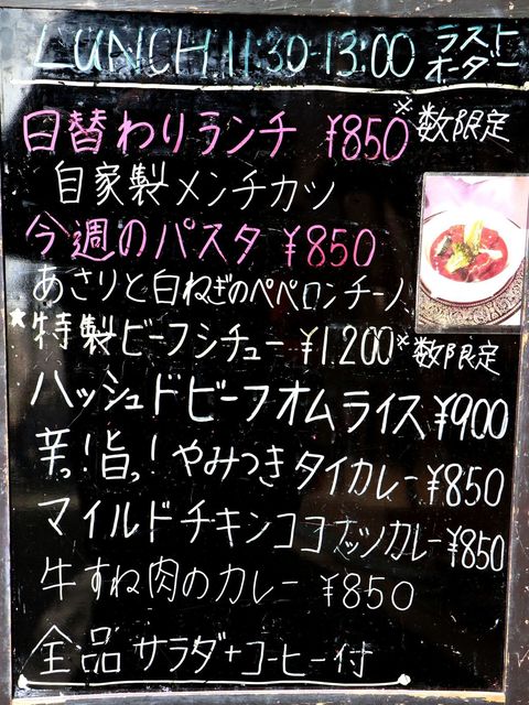 建物前にランチ看板こそあるものの、大きな扉が閉まっていますので隠れ家風です。