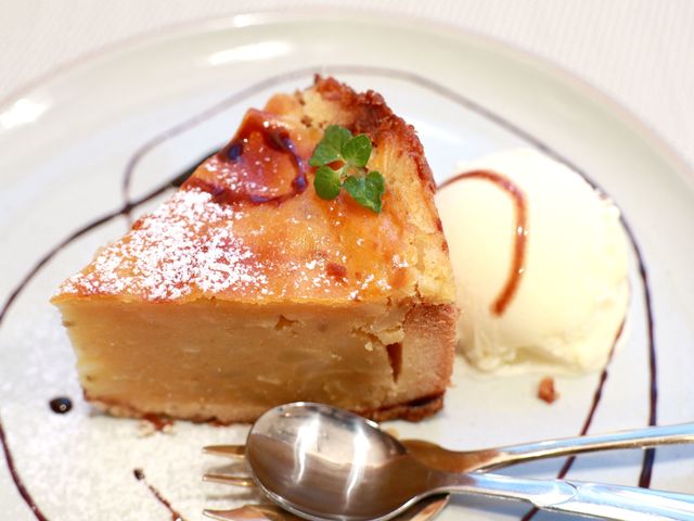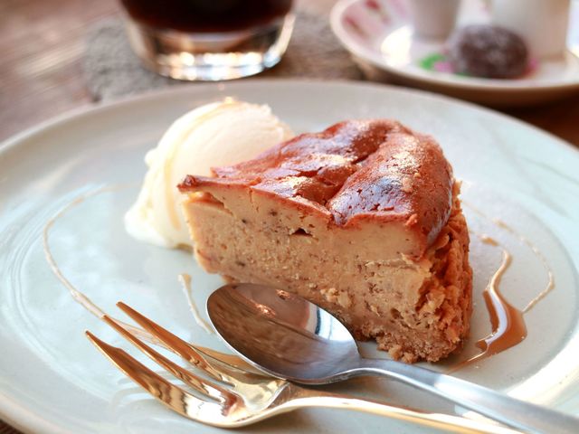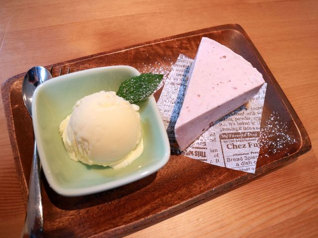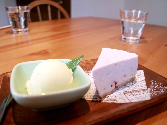 しっとり濃厚なチーズケーキにはバニラアイスがつきますが、一緒に食べると最高です。