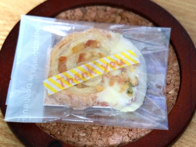「とろりと濃いめアップルマンゴージュース」を注文。ひと口菓子付き。