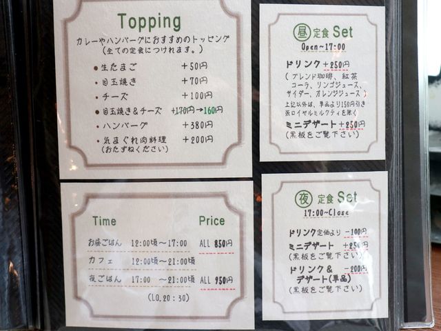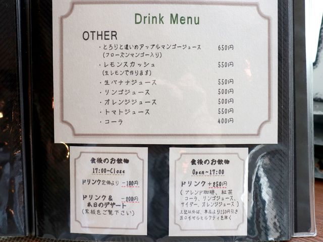 2016年冬から夜ごはん価格ができました。ランチとの差額はわずかで良心的。