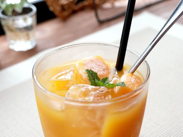 フローズンマンゴーがゴロリと浮かびます。冷たさを維持して夏場に最適です。