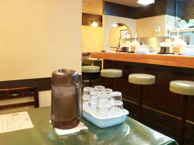 外観はドンと構えていますが、内装はカウンターとテーブルの一般的なお店です。