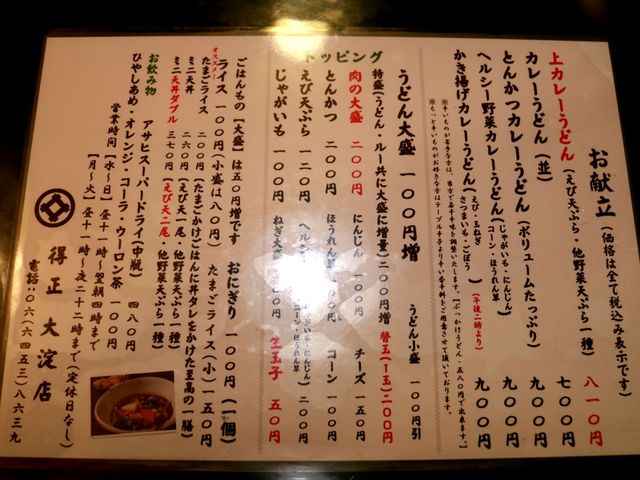 閉店得正 大淀店大阪、福島(JR西日本)、中津(阪急)/うどん、カレー、カレーうどん