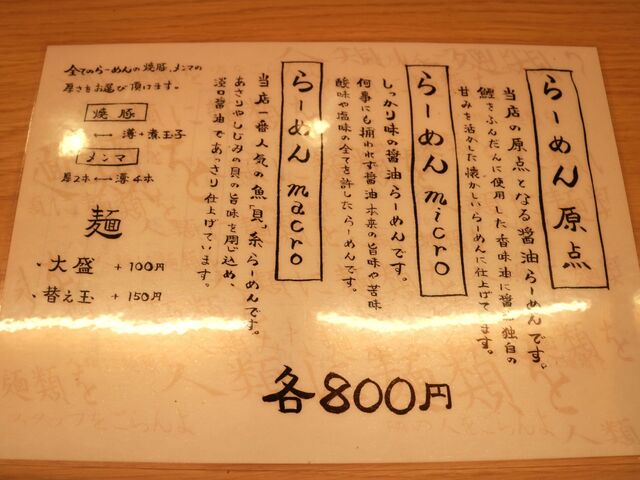 ラーメンは3種類とも800円。大盛+100円。煮玉子+50円。