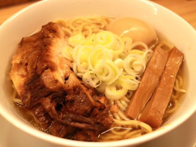 いちばん驚いたのは焼豚の存在感……写真ではスープに沈んでいますがとんでもないぶ厚さです。