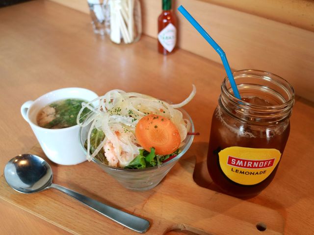 サラダにもスープにもたっぷりとサーモンが入っており、口の中が幸せで満ちました。