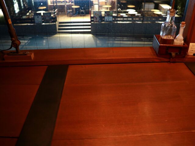 店内は木材を基調とした造りで、照明が非常に暗く設定されております。