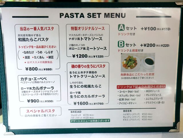 パスタのコスパは普通として、あの前菜とジュースが各110円なわけがない。