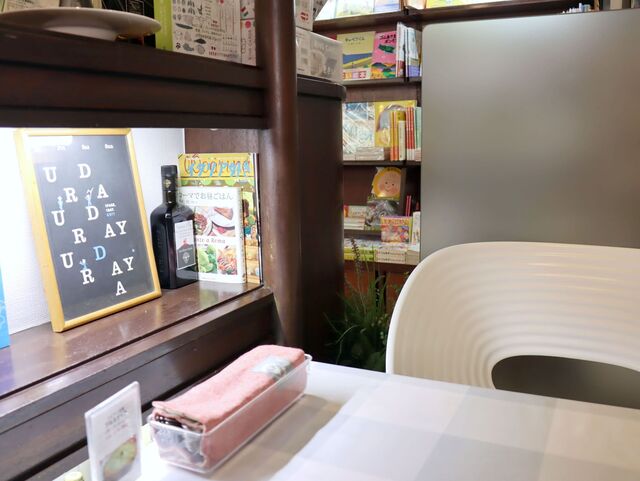 店内はテーブル席のみの造り。カフェ風に雑貨類がちょいちょい見えます。